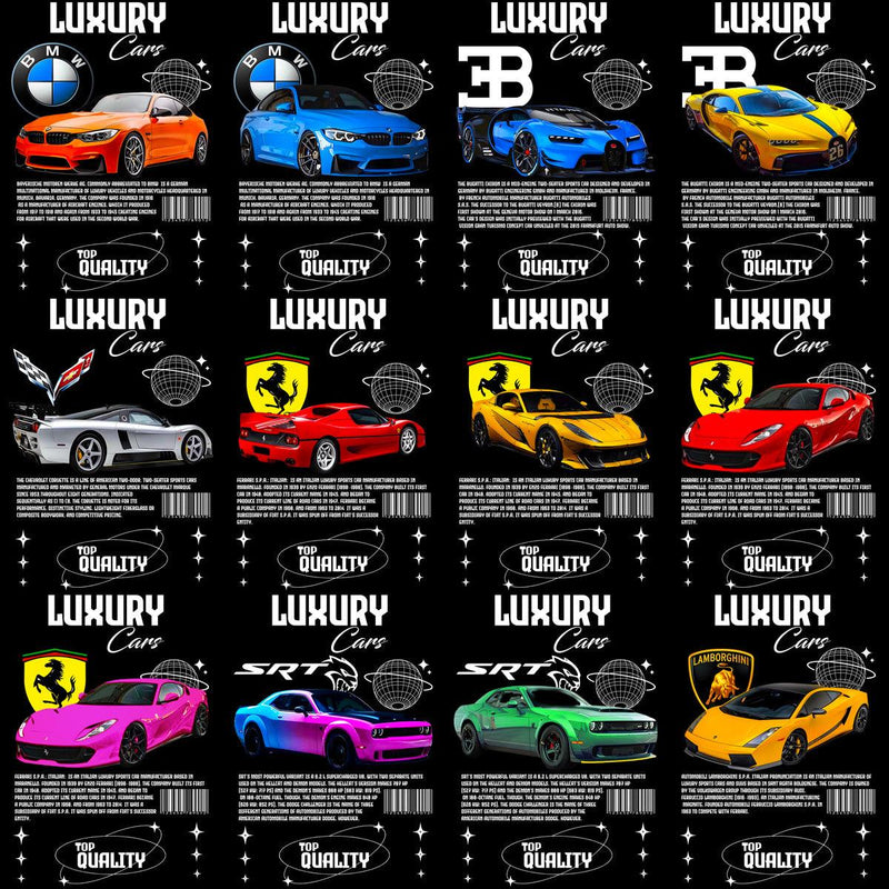 24 Luxury Cars Streetwear Designs Bundle PNG PSD