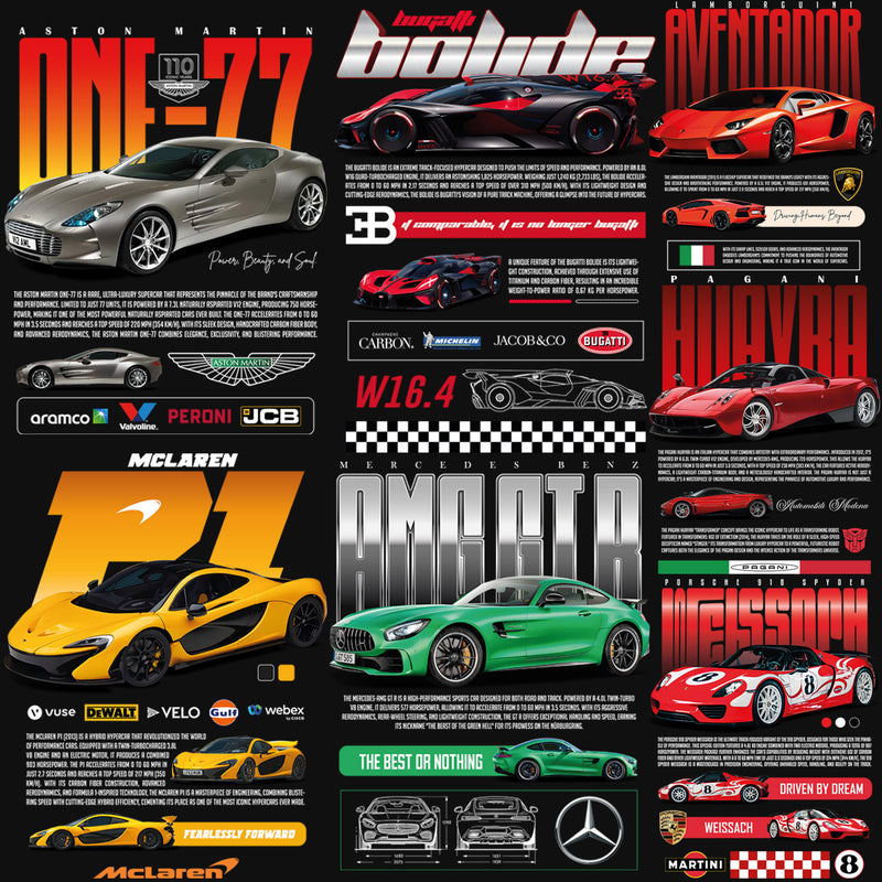 Each design combines artistry and automotive excellence, making them ideal for those looking to attract customers who appreciate luxury and speed. Whether you're printing on t-shirts, hoodies, or other apparel, these monochrome graphics are versatile enough to suit any style.