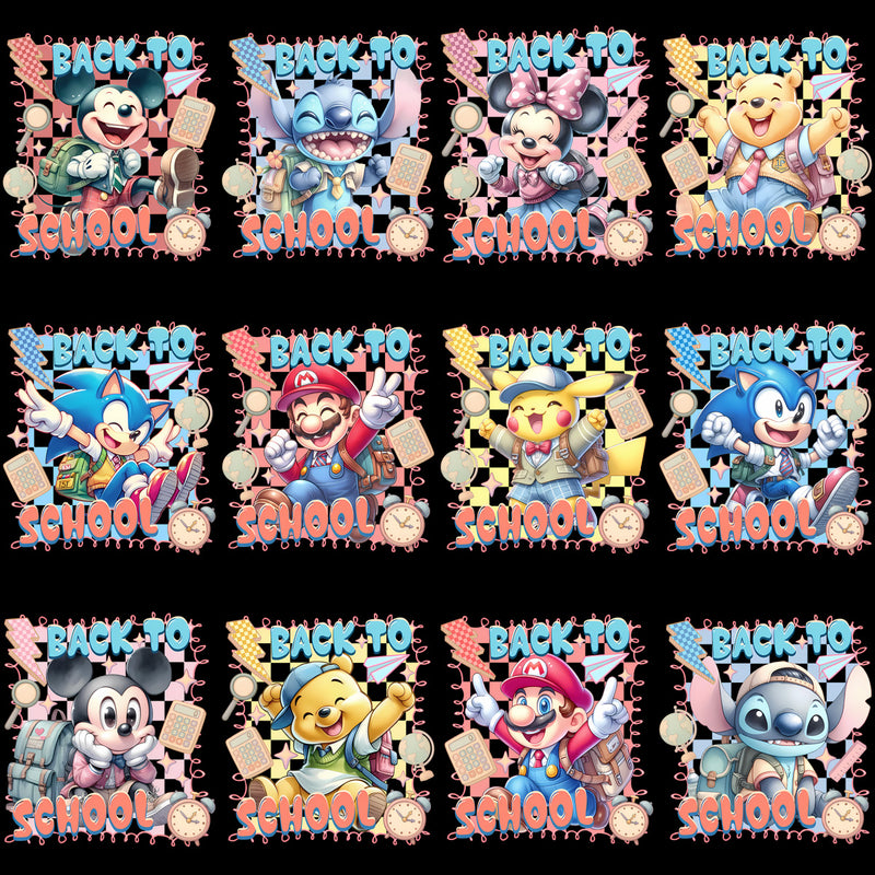 Each design is created with high-resolution perfection at 300 DPI, ensuring vibrant colors and crisp details that will make your t-shirts pop! Whether you're creating apparel for kids heading back to school or fun merchandise for adult fans of these iconic characters, this bundle has something for everyone.
