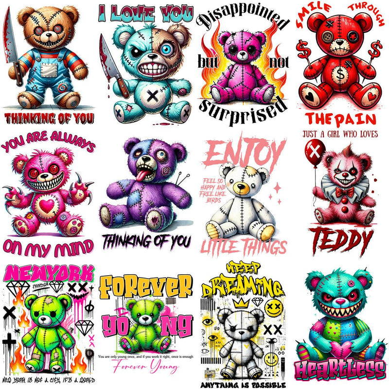 - Unique & Playful: Stand out from the competition with these one-of-a-kind illustrations. Each teddy bear doll embodies Halloween charm, featuring costumes like witches, monsters, ghosts, and pumpkins, sure to delight customers of all ages.