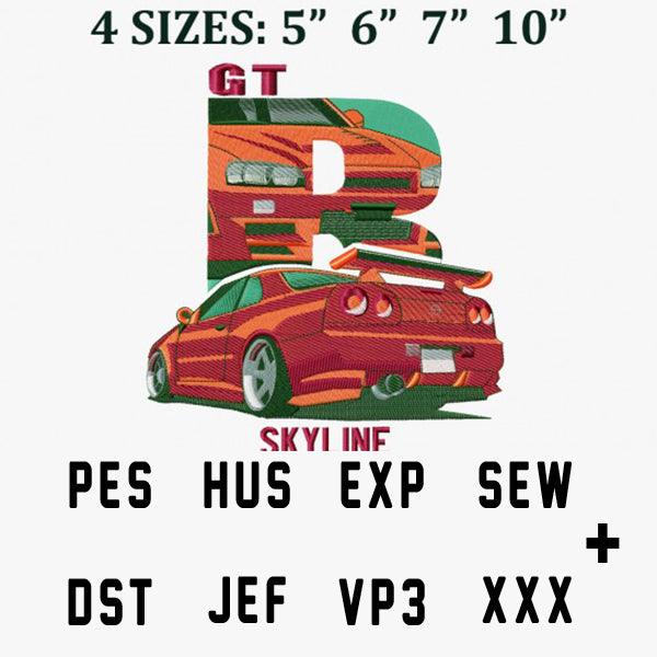 Featuring the sleek, stylized rendering of a classic Skyline Nissan Car, this is not your average embroidery design. The design captures the iconic silhouette and distinctive features of the car, making it recognizable and appealing to any car aficionado.