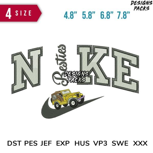 Swoosh Bestie Jeep Embroidery Design 4.8" 5.8" 6.8" 7.8"