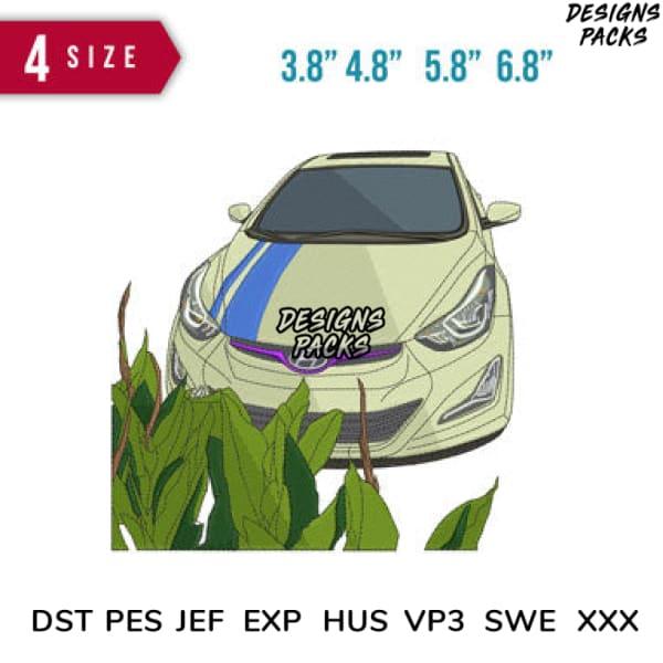 Car and Grass Embroidery Design 3.8" 4.8" 5.8" 6.8"