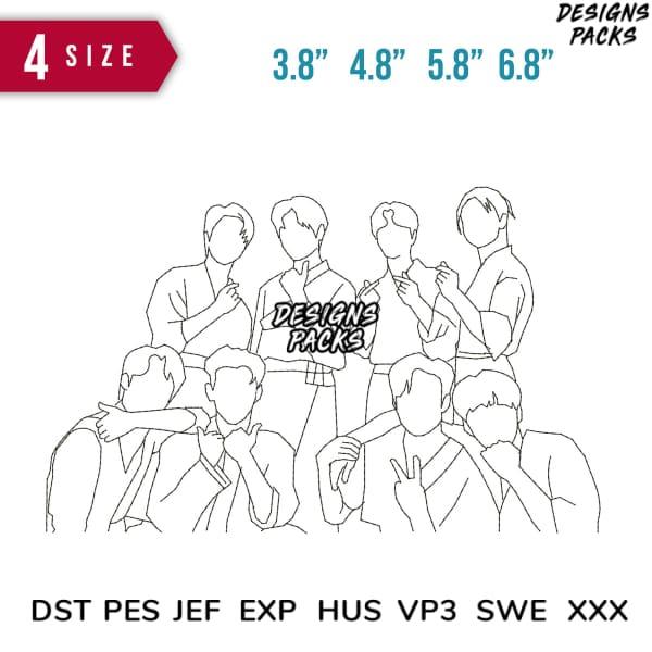 Straykids line art Embroidery Design 3.8" 4.8" 5.8" 6.8"