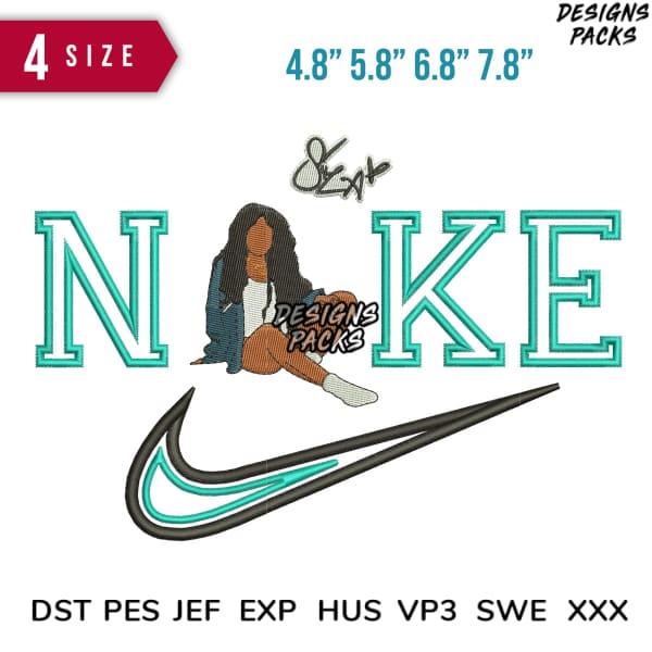Swoosh SZA Embroidery Design 4.8" 5.8" 6.8" 7.8"