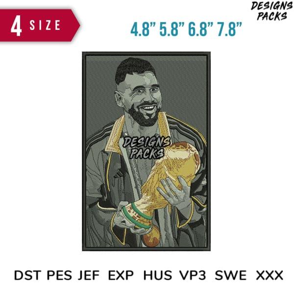messi and thropy panel Embroidery Design 4.8" 5.8" 6.8" 7.8"