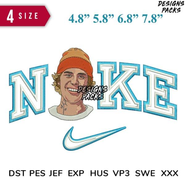 Swoosh Justin Face Embroidery Design 4.8" 5.8" 6.8" 7.8"
