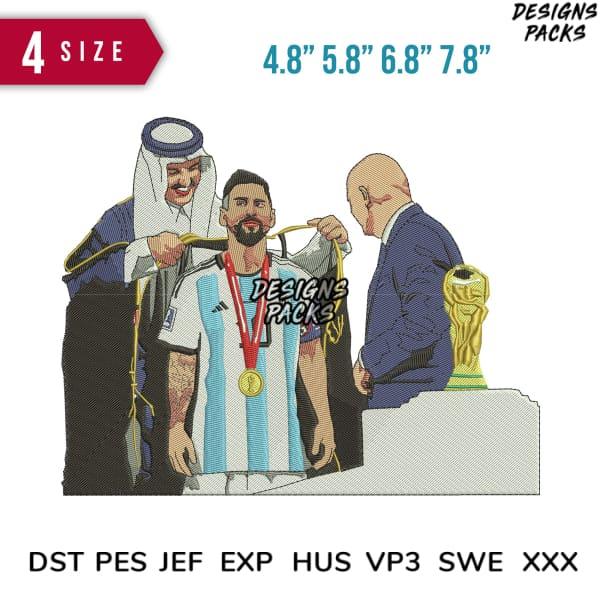 Messi Trophy presentation Embroidery Design 4.8" 5.8" 6.8" 7.8"