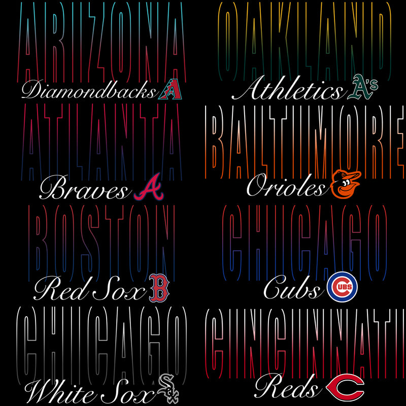 Show your city pride with this 30 MLB Teams City Name Typography Gradient Designs Bundle PNG.