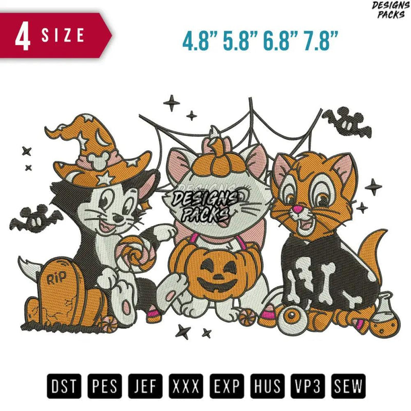 Celebrate Halloween with the Aristocats! This whimsical embroidery design features Marie, Berlioz, and Toulouse dressed in adorable costumes, perfect for adding a touch of spooky charm to your projects. From tote bags to pillowcases, let these feline friends add a touch of magic to your crafting!