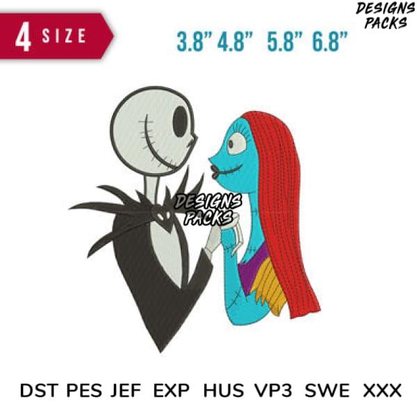Jack and Sally Embroidery Design .3.8" 4.8" 5.8" 6.8"