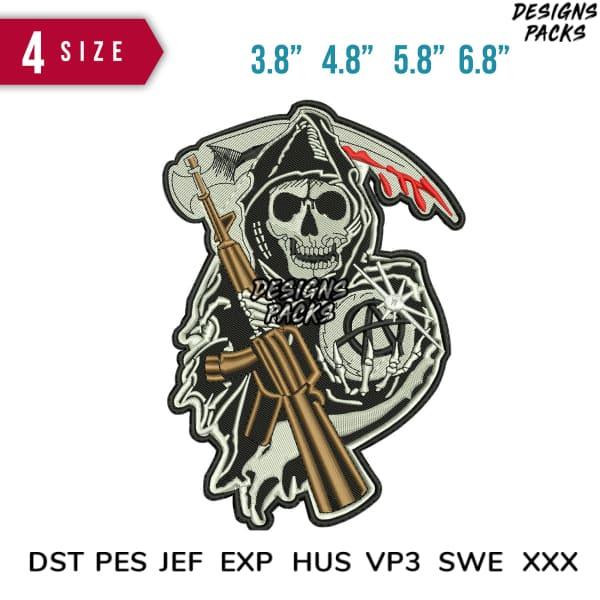 Angel of Death Embroidery Design 3.8" 4.8" 5.8" 6.8"