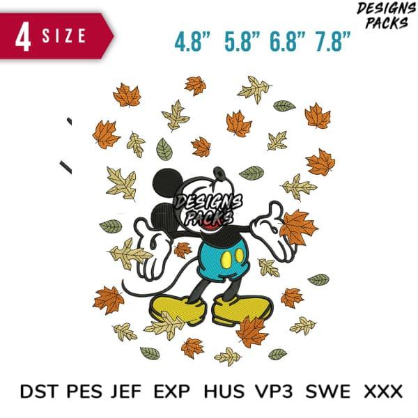 Mickey Fall Embroidery Design 4.8" 5.8" 6.8"