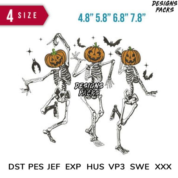 Skeleton Pumpkins Dance Embroidery Design 4.8" 5.8" 6.8" 7.8"