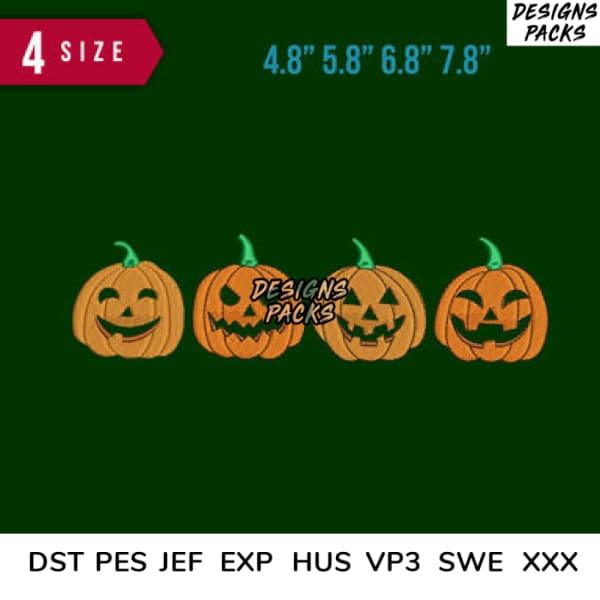 4 Pumpkins Embroidery Design 4.8" 5.8" 6.8" 7.8"