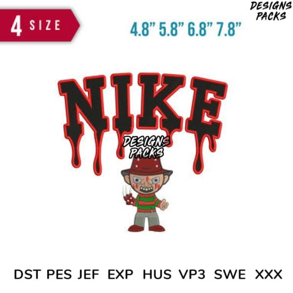 Swoosh Freddy krueger Halloween Little Embroidery Design 4.8" 5.8" 6.8" 7.8"