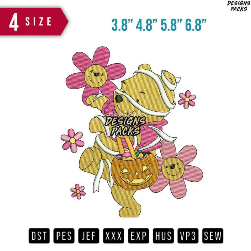 This adorable Halloween Pooh Flower Embroidery Design features a playful Pooh Bear dressed in a witch's hat, surrounded by spooky flowers. Perfect for adding a touch of whimsy to your Halloween projects, this design is ideal for embroidery enthusiasts of all skill levels.