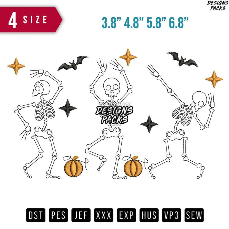 This spooky and festive design features a playful group of skeletons celebrating Halloween. Perfect for decorating your home, clothing, or creating unique gifts. With intricately detailed bones and fun Halloween accessories, this design is sure to bring a chillingly charming touch to your projects.