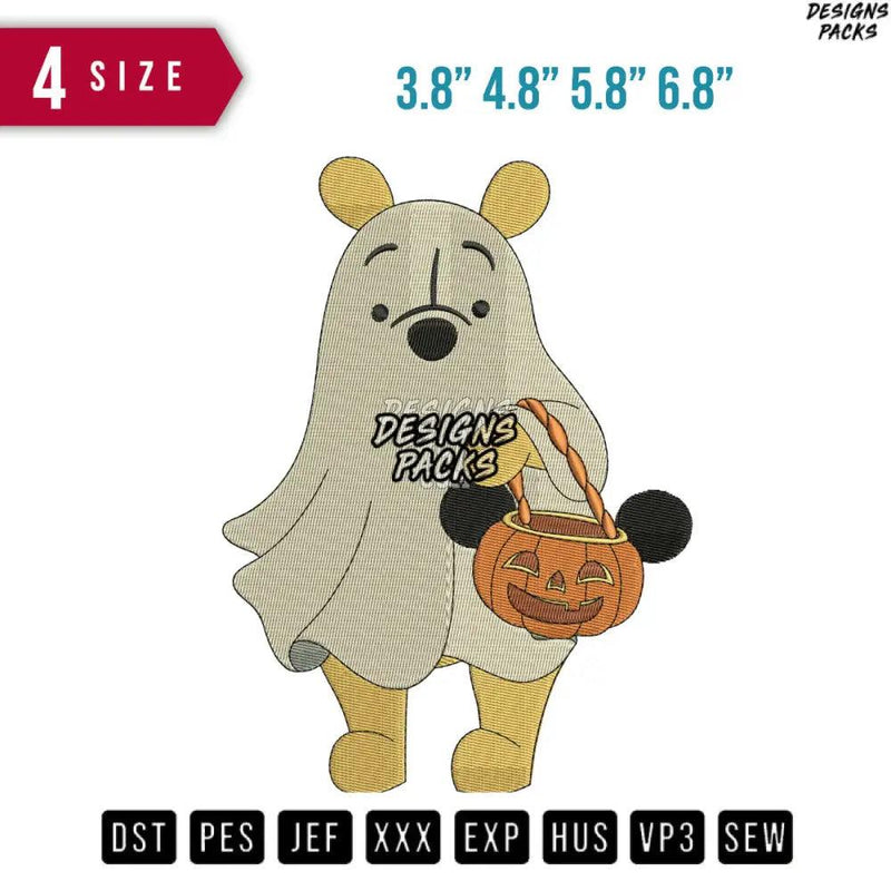 Embark on a spooky embroidery adventure with this enchanting Winnie Pooh Halloween Ghost design. Its intricate details and playful spirit bring the beloved character to life, transformed into an adorable ghost for a touch of festive fun. Perfect for Halloween decor, personalized gifts, or adding a whimsical touch to any project, this design captures the magic of the season with its captivating charm.
