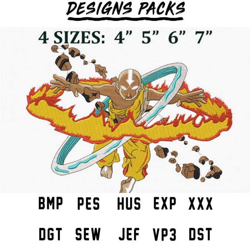 Aang Airbender Anime Movie Embroidery Design