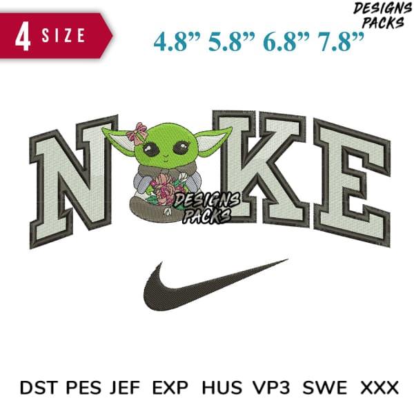 Swoosh Baby girl Yoda Embroidery Design 4.8" 5.8" 6.8" 7.8"