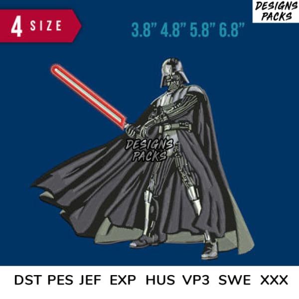 Darth Vader Embroidery Design 3.8" 4.8" 5.8" 6.8"
