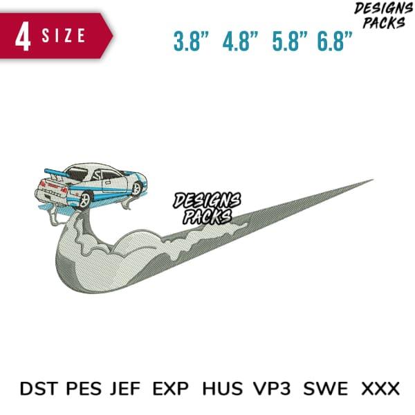 Swoosh Car Racing Embroidery Design 3.8" 4.8" 5.8" 6.8"