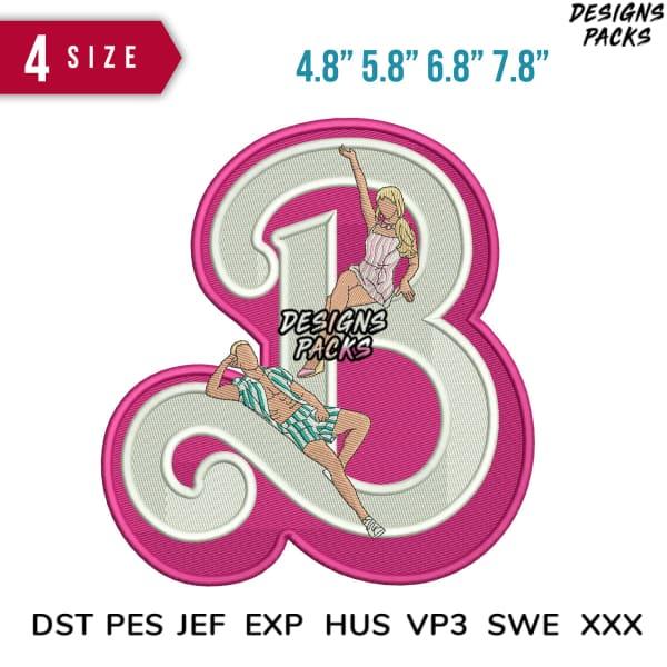 B Girly Embroidery Design 3.8" 4.8" 5.8" 6.8" 7.8"