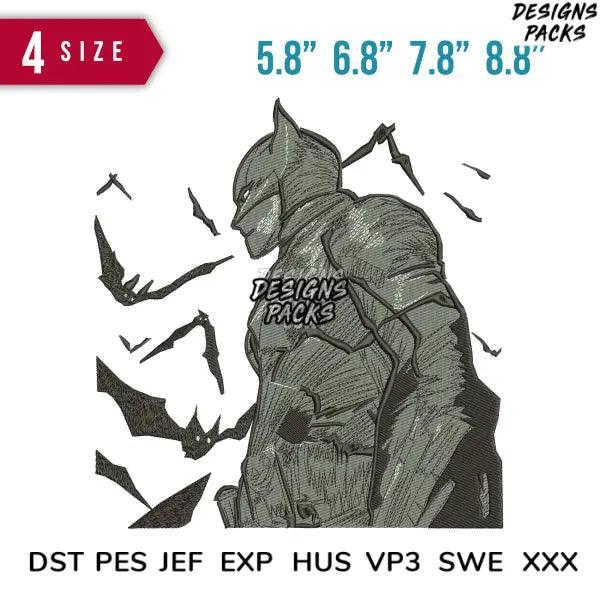 Movie Bat Scribble Embroidery Design