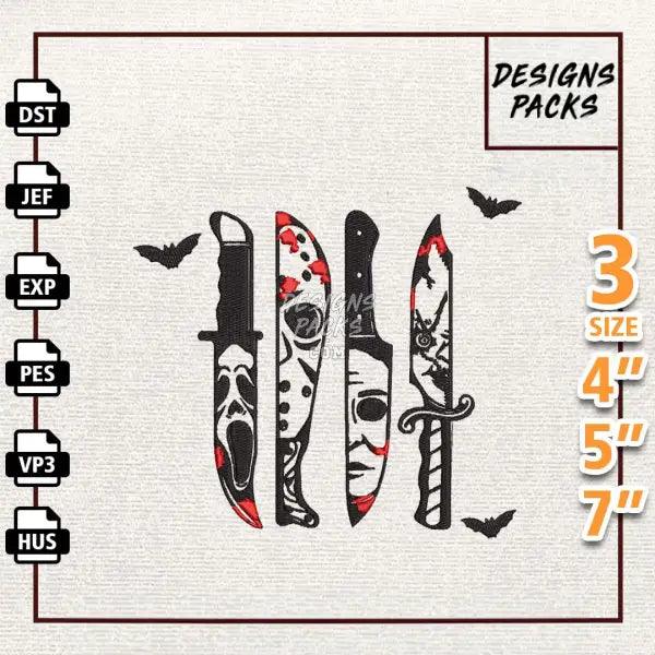 Horror Movie Characters In Knives Embroidery Design