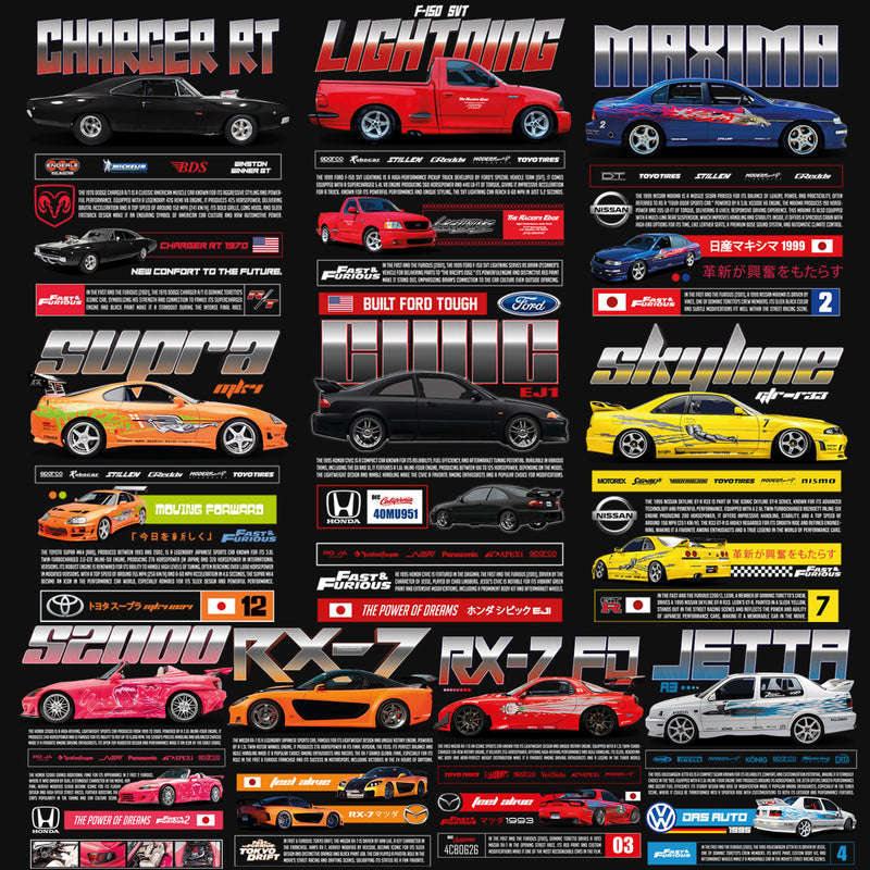 - Unique Designs: From the magnificent Dodge Charger RT to the legendary Nissan Skyline and Toyota Supra MK4, each design stands out with dynamic artwork, making your products irresistible.