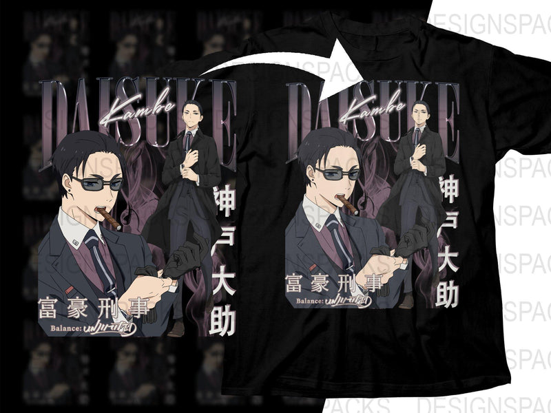 Showcase your style with our premium Daisuke Kambe Detective anime T-Shirt featuring bold graphics and unique Japanese characters for an eye-catching look.