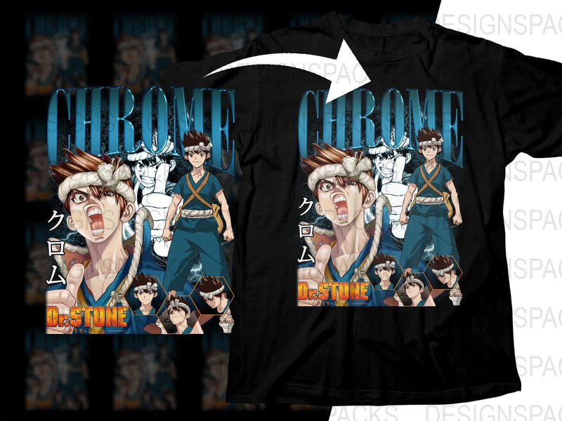Featuring dynamic graphics from Dr. Stone, this Chrome T-shirt is perfect for anime fans who love bold and energetic designs. Show off your fandom in style!