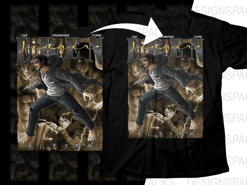 Dive into the action with our epic Eren Founding Titan T-Shirt, featuring dynamic artwork and striking details from your favorite anime. Unleash your inner titan now!