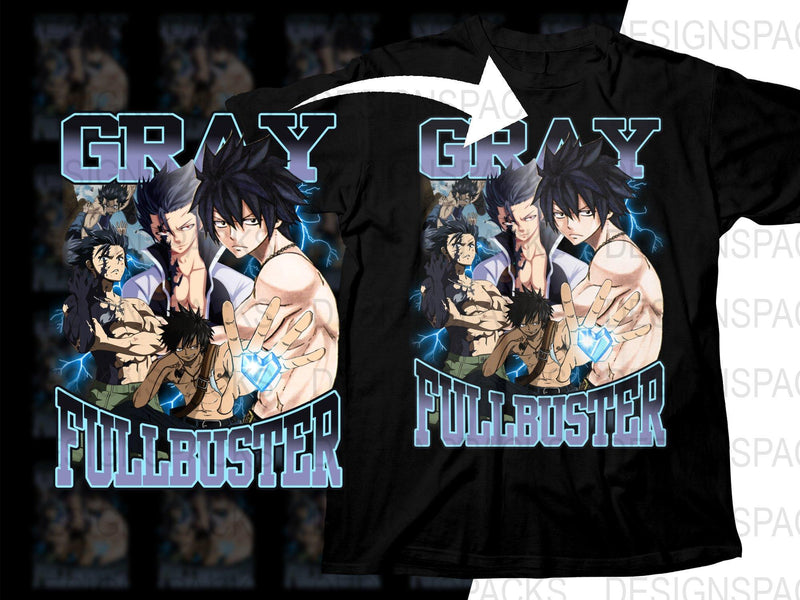Dive into style with our Gray Fullbuster T-Shirt, showcasing dynamic anime art of the beloved character. Perfect for fans wanting to wear their fandom proudly.
