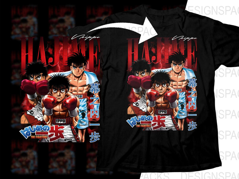 Get this dynamic Hajime no Ippo T-shirt featuring the iconic trio in bold, vibrant print. Perfect for anime enthusiasts and boxing fans alike!