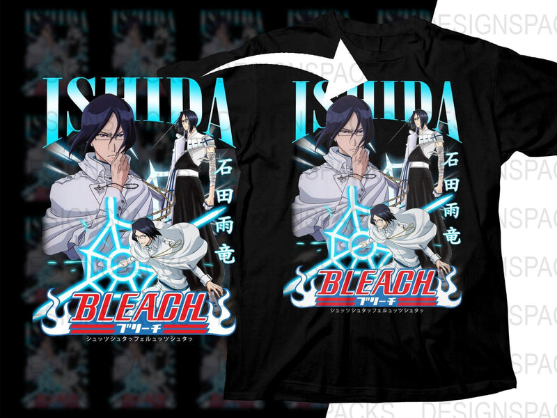 Show off your love for Bleach with this stylish T-shirt featuring Ishida Uryu in various dynamic poses. Perfect for anime fans and collectors alike!