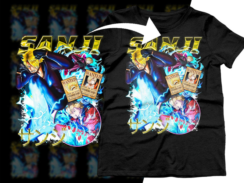 Elevate your style with this vibrant Sanji Epic Action Poster and Wanted Signs Png Digital DOWNLOAD featuring dynamic prints and bold colors perfect for any anime fan.