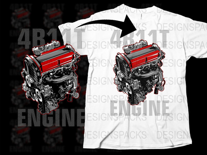 Show your love for engines with this stunning 4B11T graphic design on a Png Digital Download. Ideal for car enthusiasts and makes a unique addition to your apparel.