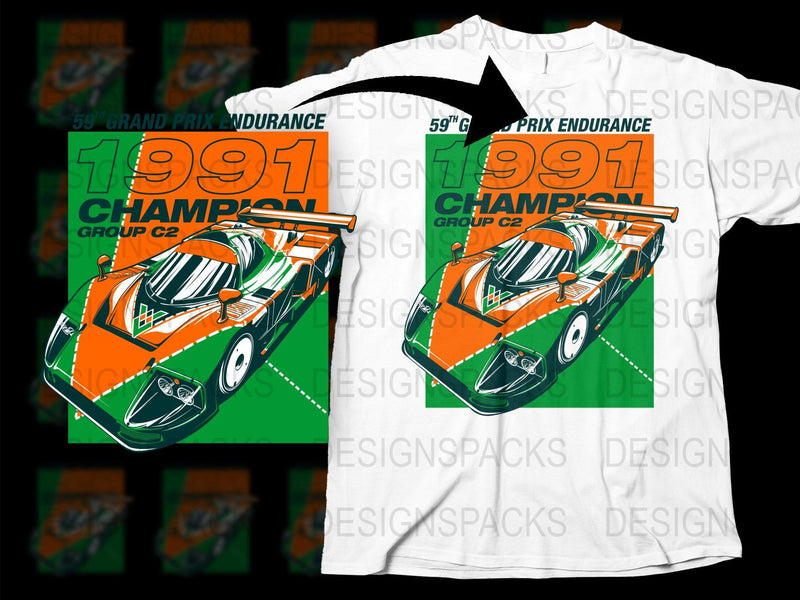 Celebrate the 59th Grand Prix Endurance with this 1991 Champion Group C2 Png Digital Download featuring a dynamic race car design and bold lettering.