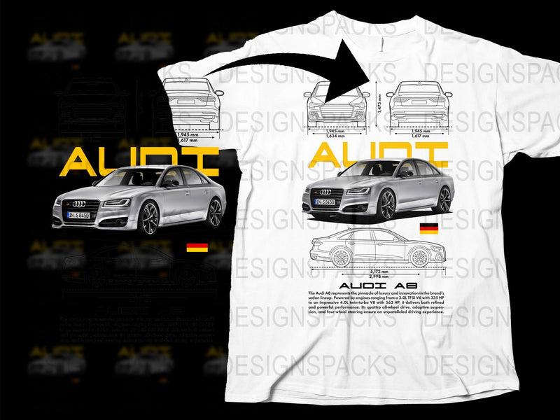 Audi A8 Car Dimensions Automotive Engineering Tech Png Digital Download