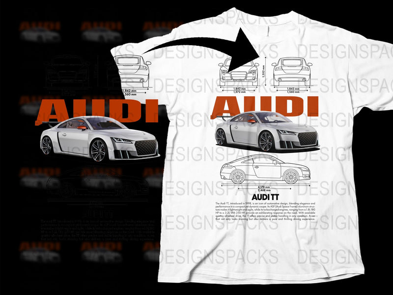 Audi TT Car Blueprint and Design Diagram Graphic Png Digital Download