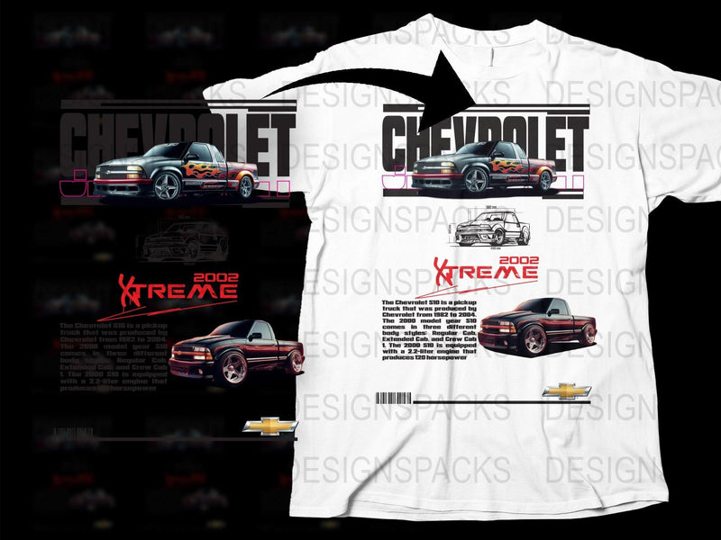 Celebrate the iconic Chevrolet S10 Xtreme 2002 with this bold graphic Png Digital Download featuring vivid illustrations of the classic pickup truck.