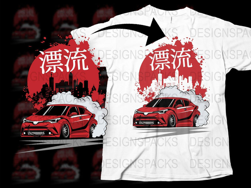 Stand out with the Drift Car City Skyline Red Graphic Png Digital Download. This vibrant design features a dynamic car against a cityscape backdrop creating a bold look.