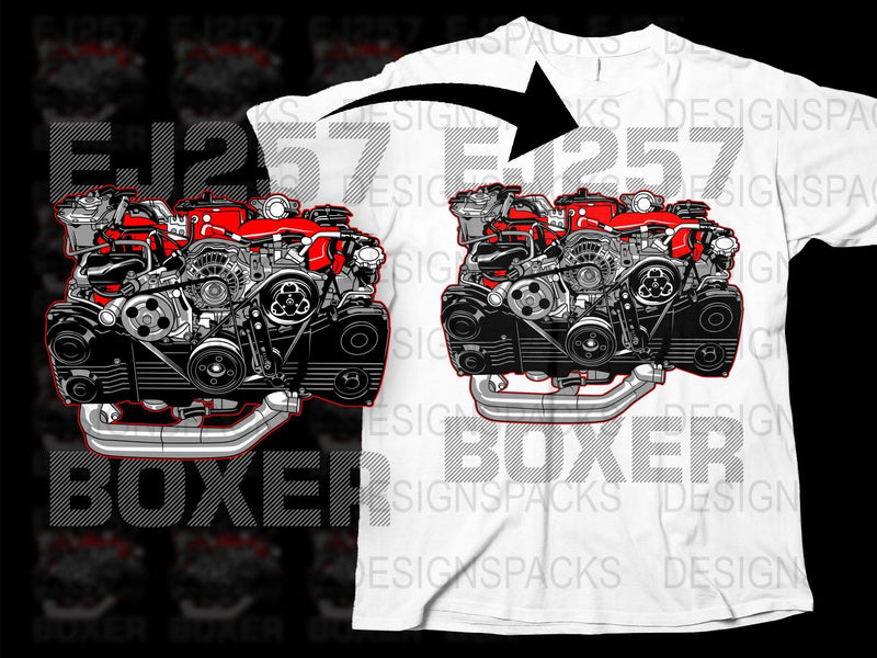Show off your automotive passion with this eye-catching EJ257 Boxer Engine graphic. Perfect for car enthusiasts wanting a unique Png Digital Download that stands out.