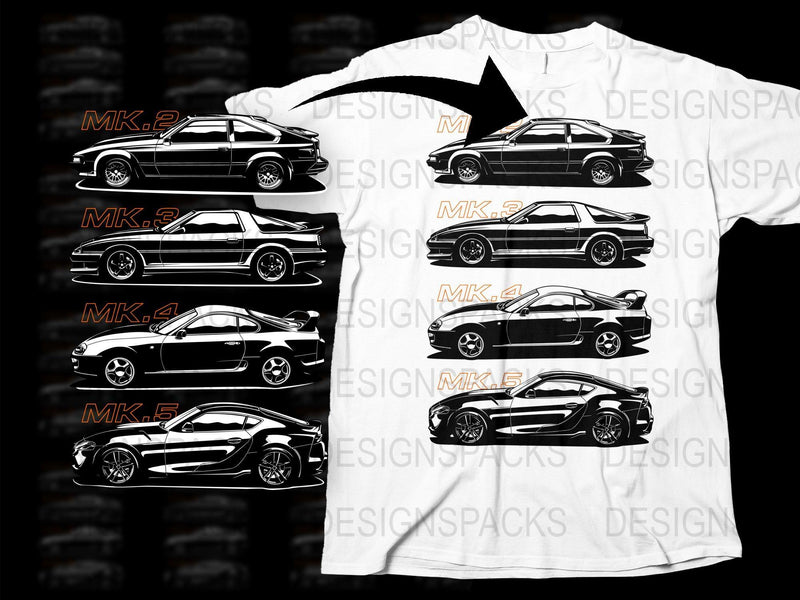 Discover the evolution of classic sports car generations with this captivating Png Digital Download. Perfect for car enthusiasts who appreciate automotive history.