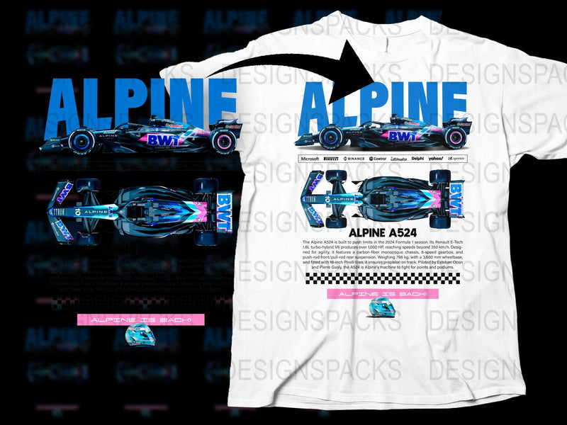 Formula One Alpine A524 Race Car Artwork Design Png Digital Download