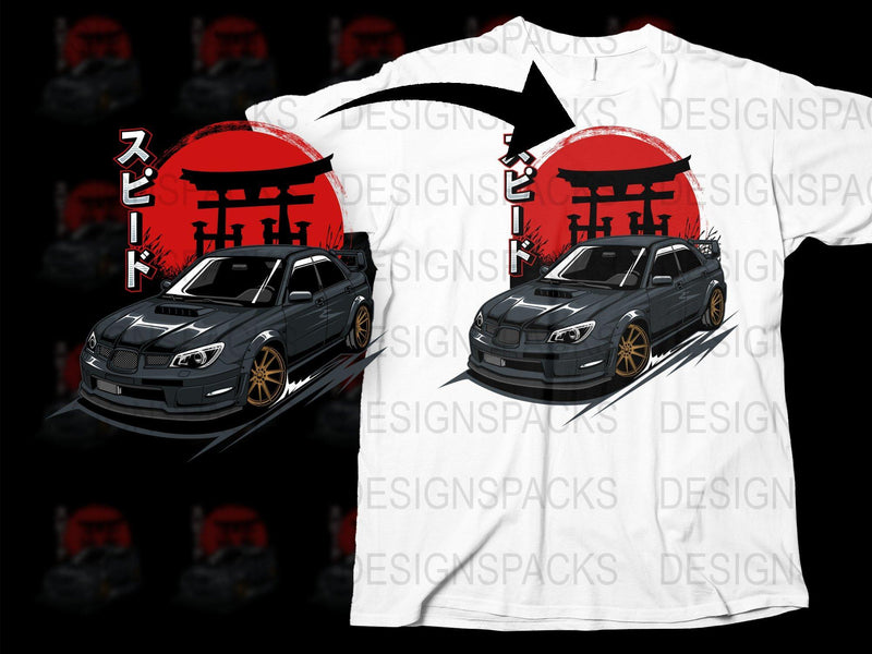 Show your love for Japanese car culture with this stylish graphic Png Digital Download featuring a car and iconic Torii gate in the background.