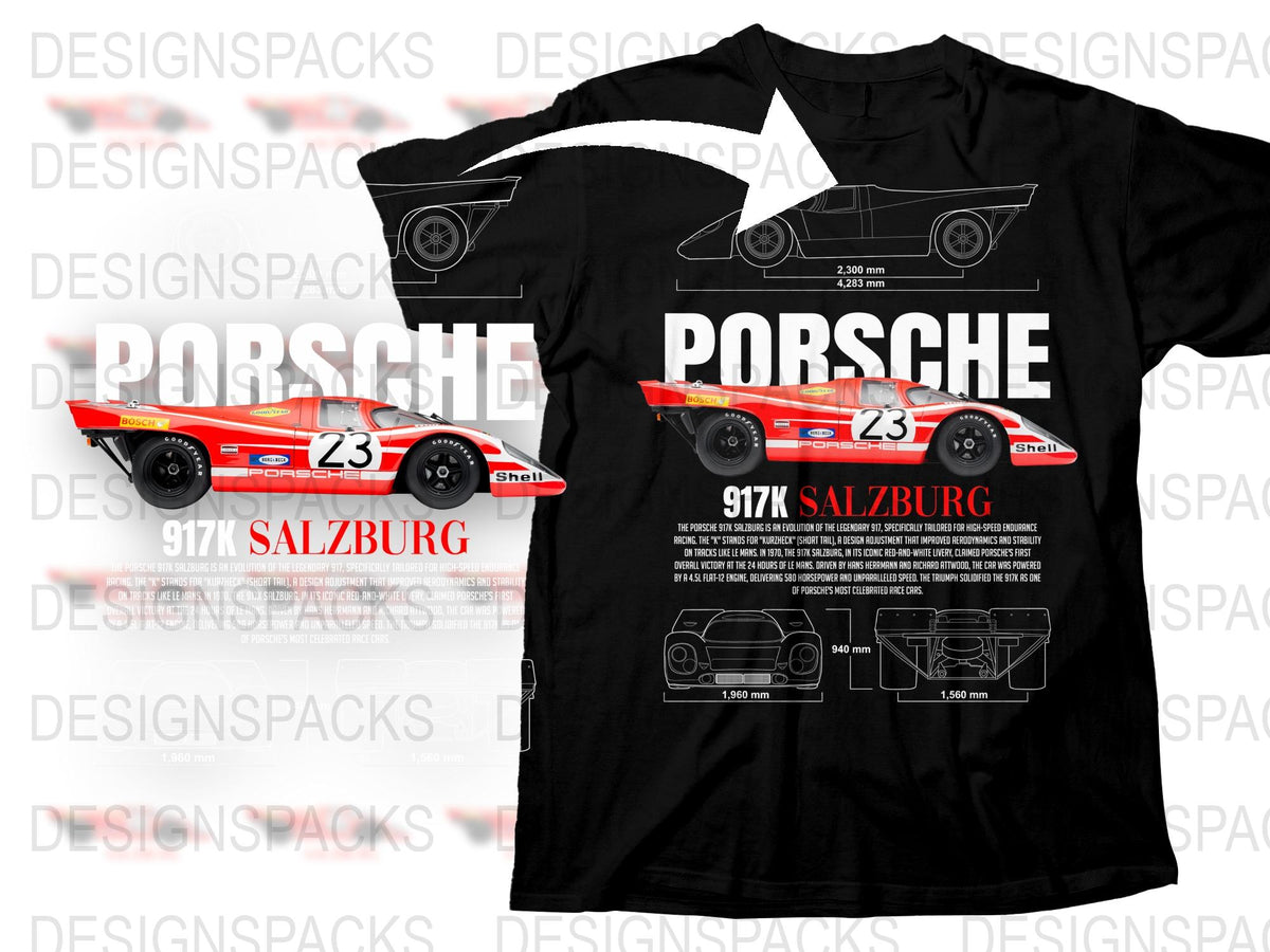 Vintage Porsche 917K Salzburg Racing T-Shirt, Retro Car Enthusiast Tee, Motorsport Graphic Shirt, Collector's Item, Red and White Design