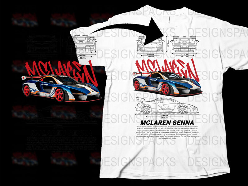 Mclaren Senna Gulf Livery blueprint dimensions Png Digital Download
